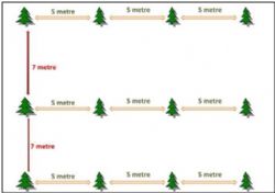 c. Chandler ağacı yan dallara verimli olduğundan dolayı, koridor tipi dikime uygun bir cinstir. Bu kapsamda 4x8 , 5x7 6x6 , 7x7 aralıklarla dikim yapılabilir.